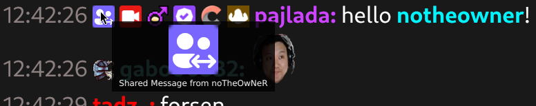 • Moderators and VIPs in shared chats now show their channel badges. Authored by @jupjohn in #6653
