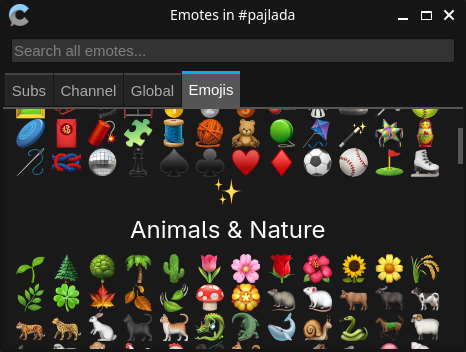 The emote popup now includes categories for the emoji list.