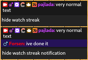 • Hide watch streak notifications, including the message the user sent: !flags.watch_streak
